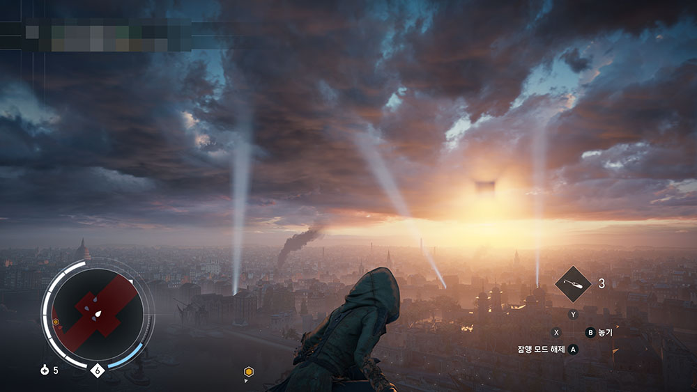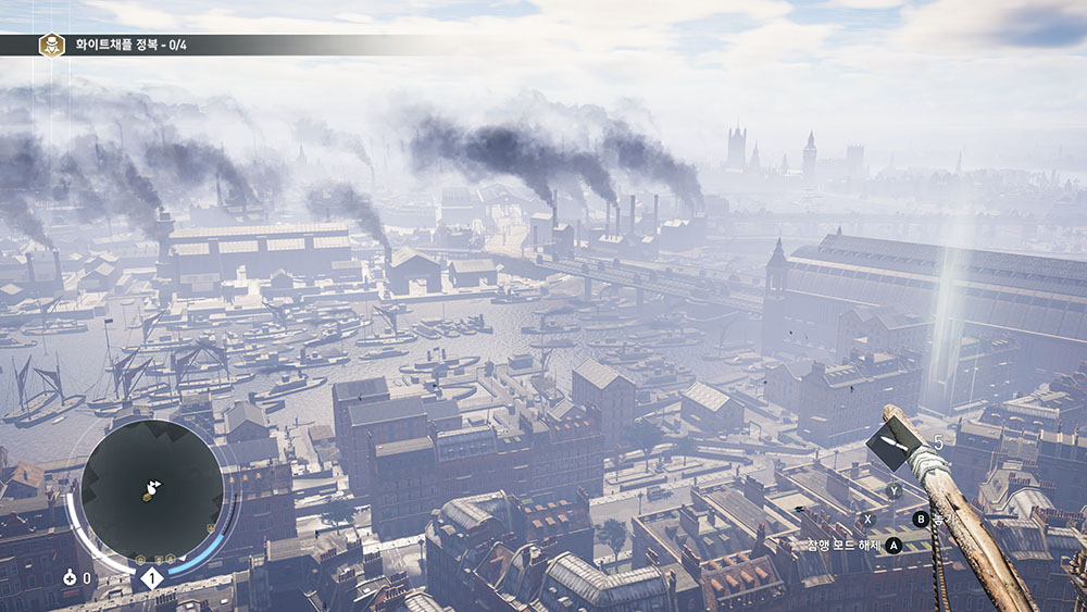그렇지만 동기화를 위해 높은 곳에 올라가면 상황은 달라집니다. 한 블럭을 넘어가면 안개가 자욱히 깔려 원경의 텍스쳐는 거의 열화됩니다. 반면 오리진은 새로운 게임엔진을 써서 시야가 확보되는 지형 모두 선명하게 보입니다. 신디케이트까진 스크린샷을 찍고 싶은 마음이 전혀 안 드는데 오리진은 가는 곳마다 정신없이 스크린샷 모드를 가동한 이유이기도 합니다.