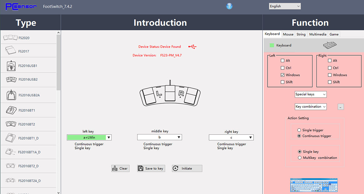 pcsensor.com 에서 다운로드받은 전용 커스터마이징 프로그램입니다. 매우 단순하지만 그래서 신뢰가 갑니다. 세팅값을 저장하면 다른 PC에 연결해도 작동 잘 됩니다.