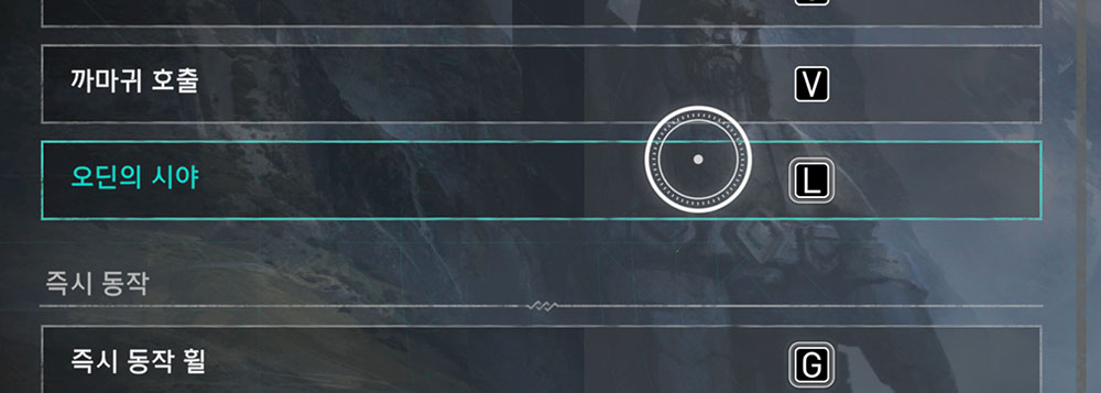 마지막으로 키보드 유저설정 화면에서 오딘의 시야 (비전보기) 등을 기본값에서 할당되지 않은 L 키 등으로 변경합니다. 키보드 페달도 L 로 변경하는 건 당연합니다.