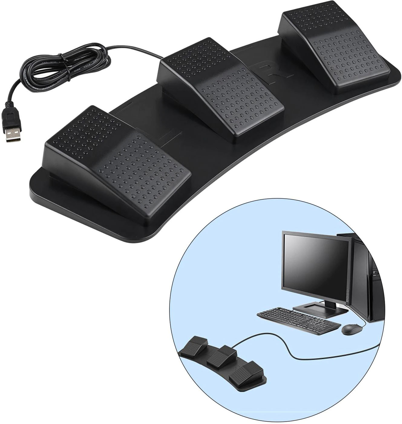 참다 못해 알아보고 구입한 USB 페달 스위치입니다. 보다시피 세개의 페달이 달려 있고, 전용 프로그램으로 각각 할당이 가능합니다.