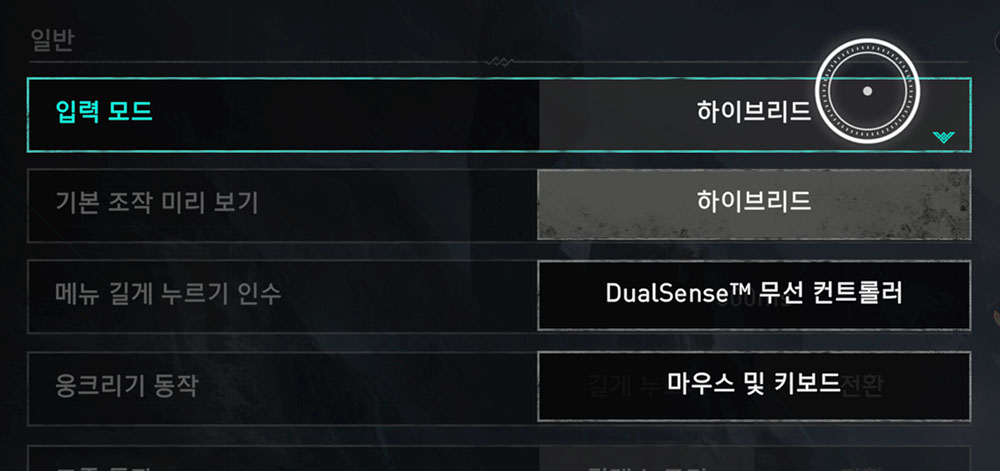발할라는 이렇게 조이스틱과 키보드 입력을 동시에 받아주는 옵션이 있습니다. 그래서 듀얼센스 조작 중에도 USB 페달로 받은 키보드 입력을 인식할 수 있죠.