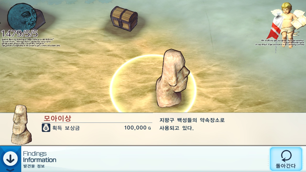 랜덤 지도라 대항해시대처럼 전세계를 돌아다니는 재미도 없고, 무역은 대항해시대의 소매상이 아닌 도매상 급 상회 거래라 취향이 아니고, 인터페이스는 구리고, 지도를 탐색해서 발견하는 역사적 유물도 현실 그대로가 아니라 게임 특유의 유쾌한 분위기로 비틀은 거라 도움 안됩니다. 대항해시대와 같은 시대에 나온 게임이면서 대항해시대와 달라지기 위해 일부러 노력한 B급 게임 티가 좔좔 흐릅니다. 그러니 대항해시대에 비해 널리 알려지지 못했죠. 대항해시대를 대체할 만한 게임을 찾는 여정은 계속됩니다.