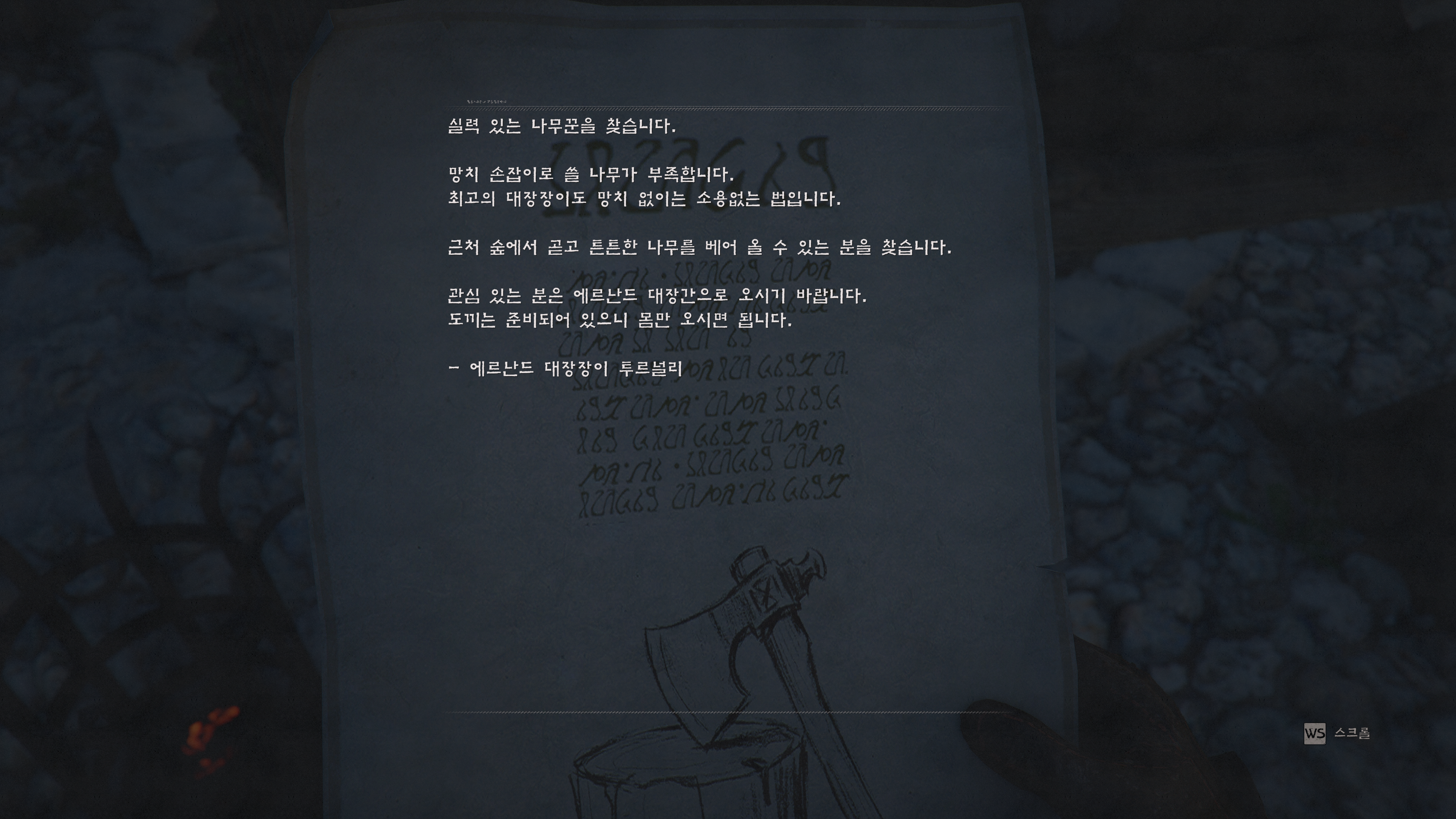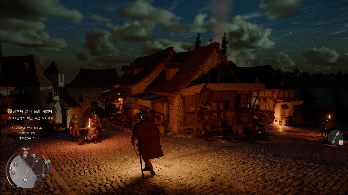 퀘스트 수주도 마찬가지입니다. 게시판에서 종이를 찢어낸 후 주의깊게 읽어야 겨우 퀘스트가 시작됩니다. 이 모든 절차가 불편하긴 한데, 몰입용 장치로서는 일류입니다. 스카이림 모드에서도 붉은 사막처럼 가게의 진열품을 대폭 증가시키거나 퀘스트 수주 절차를 구리지만 몰입감이 가는 스타일로 변경하는 것이 있었습니다.