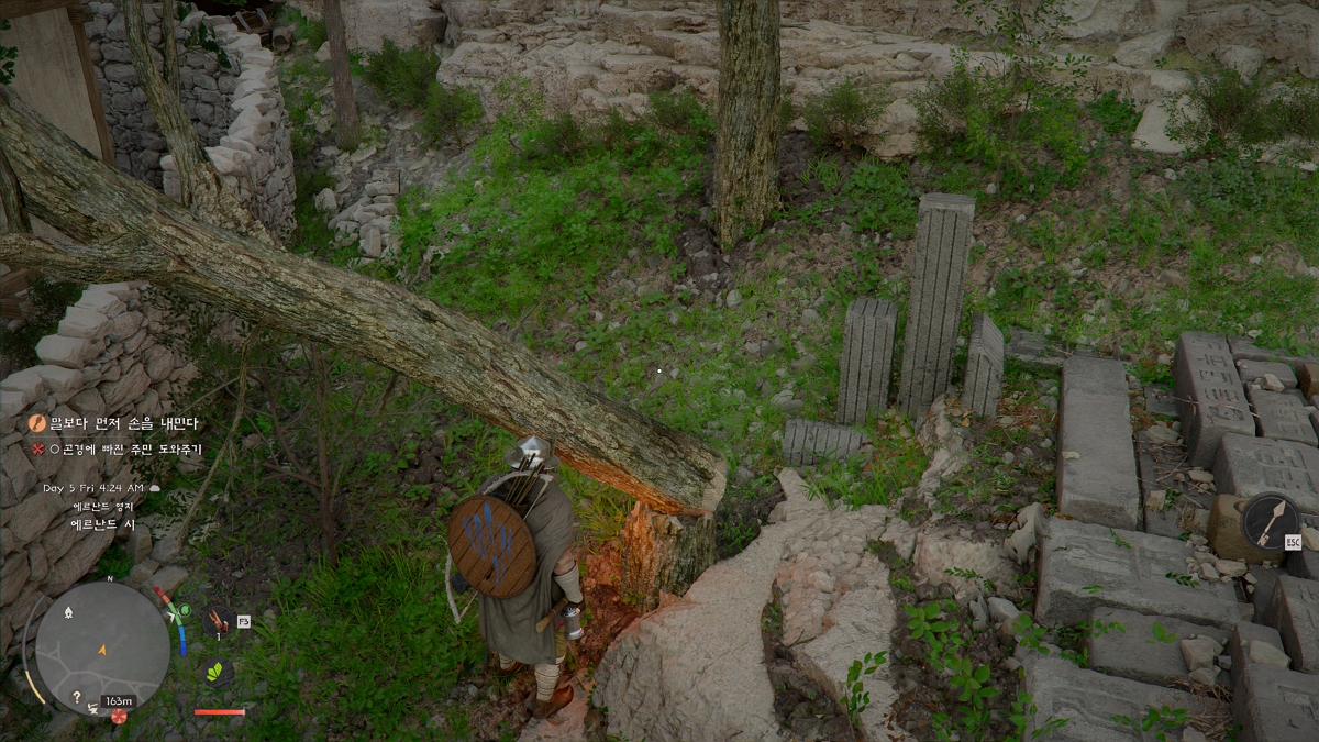 각각의 생활 스킬도 굉장히 복잡합니다. 예를 들어 나무를 팰 땐 쓰러지는 방향에서 피해야 대미지를 입지 않으며, 이 후에도 큰 가지로 잘라내고 작은 가지로 또 다시 잘라내야만 최종 생산물인 장작을 주울 수 있습니다. 처음 할 땐 신기하지만 무기 강화할 때 필요한 나무 소재를 얻느라 수십 그루의 나무를 패고 다니는 걸 생각하면 까마득합니다.