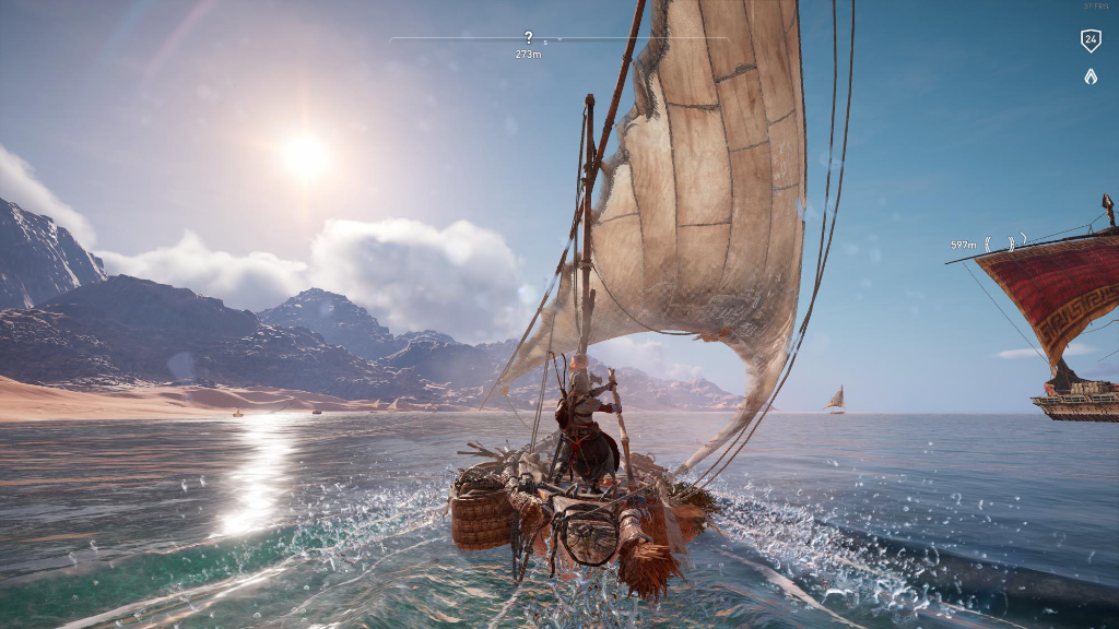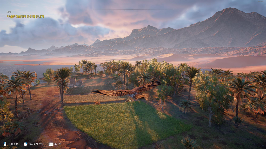 그래픽 수준은 오리진과 큰 차이가 없다고 생각합니다만 사양은 한단계 더 올라가서 4K 풀옵 60 프레임에서 놀다가 풀옵 미만 30~40 프레임으로 버거워졌네요. 주로 구름이나 안개같은 구현이 복잡한 풍경묘사가 강화된 것 같습니다.