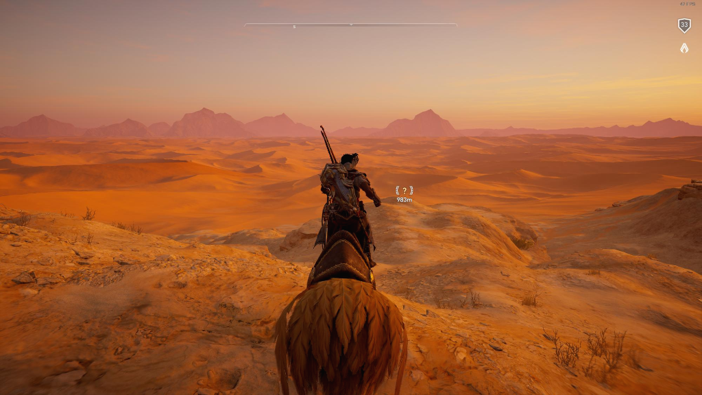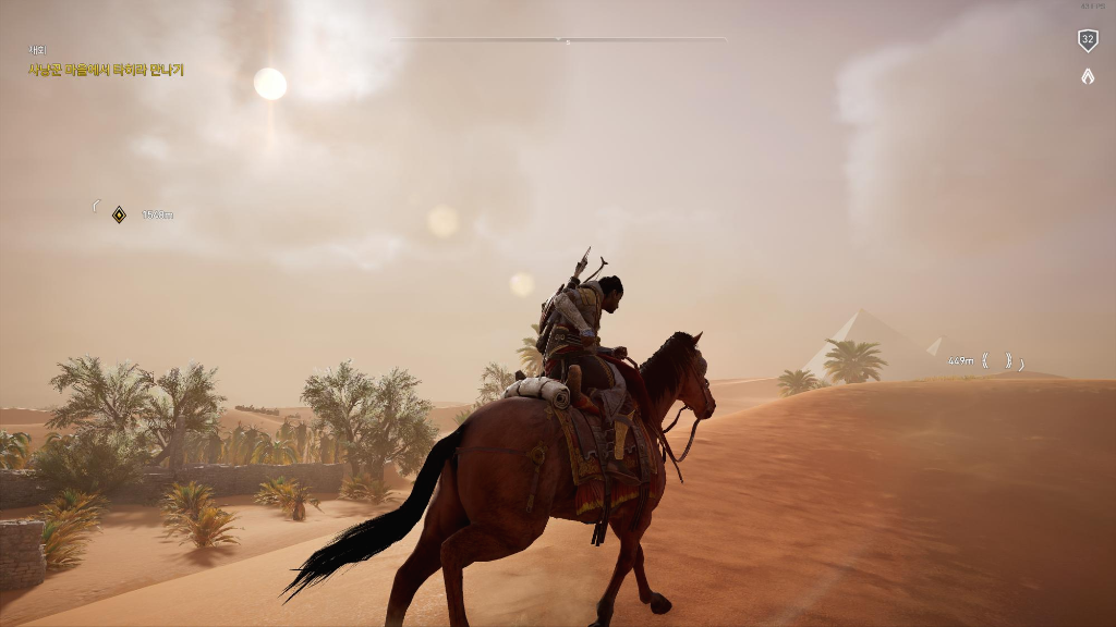 뭣?! 전작인 오리진이 기원전 50년인데 거기서 400년을 더 거슬러 올라가?! 그럼 암살단 흔적도 없던 시절인데 암살스킬 어떻게 쓰라는 거지?! 시작은 막막한 심정 그대로 할 수 있는 것이 아무것도 없는 평범한 액션 어드벤쳐였습니다. 독수리(드론)도 안 뜨고 배트-적외선 비전도 안 뜨고, 당연히 되어야 하는게 하나도 안됩니다. 심지어 주워먹을 수 있는 아이템조차 가독성 좋게 크게 번쩍거리지 않고 마침표 하나 크기의 하얀 점만 가까이 가야만 떠서 언차티드 하는 기분이었죠.
