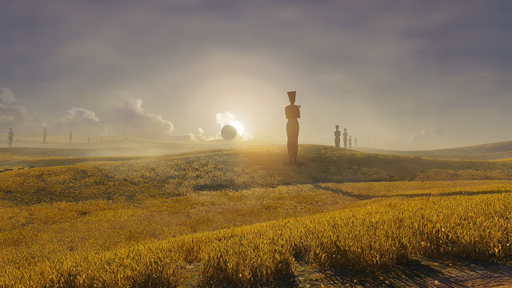 무엇보다 저를 감동케 했던 건 상상력이 막나가는 저승맵이었습니다. 이전 글에서 고대 이집트니 상상력 좀 막 나가면 안되냐고 투덜댔었죠? 그 소망이 바로 여기서 실현되었습니다. 그것도 제가 아주 딱 바라던 형태로 말이죠. 이집트 종교의 저승맵부터 시작해서 서양인들이 생각하는 천국 - 끝없이 펼쳐지는 황금 밀밭 - 이계 행성 같은 황량한 전쟁터, 그리고 파이널 판타지 10 의 자나르칸드같은 명계까지 말이죠! 이 게임은 옛날 파이널판타지 15 와 콜라보레이션해서 출시했기에 게임 내에 파판15 광고도 나오고 파판15 무기도 나옵니다. 파판 15 게임에서도 어쌔신크리드 축제를 열기도 했었고요. 그 흔적인지 명계맵도 마치 파판 10 의 자나르칸드의 분위기를 완전히 닮은 곳이 나옵니다. 언젠가 파판10 이 리메이크되서 오픈월드 게임이 된다면 사막이나 자나르칸드 같은 곳에서 돌아다니고 싶다고 생각했었는데, 설마 어쌔신크리드 오리진 이 게임이 사막과 자나르칸드 두 맵을 전부 실현시켜줄 준 상상도 못했습니다.