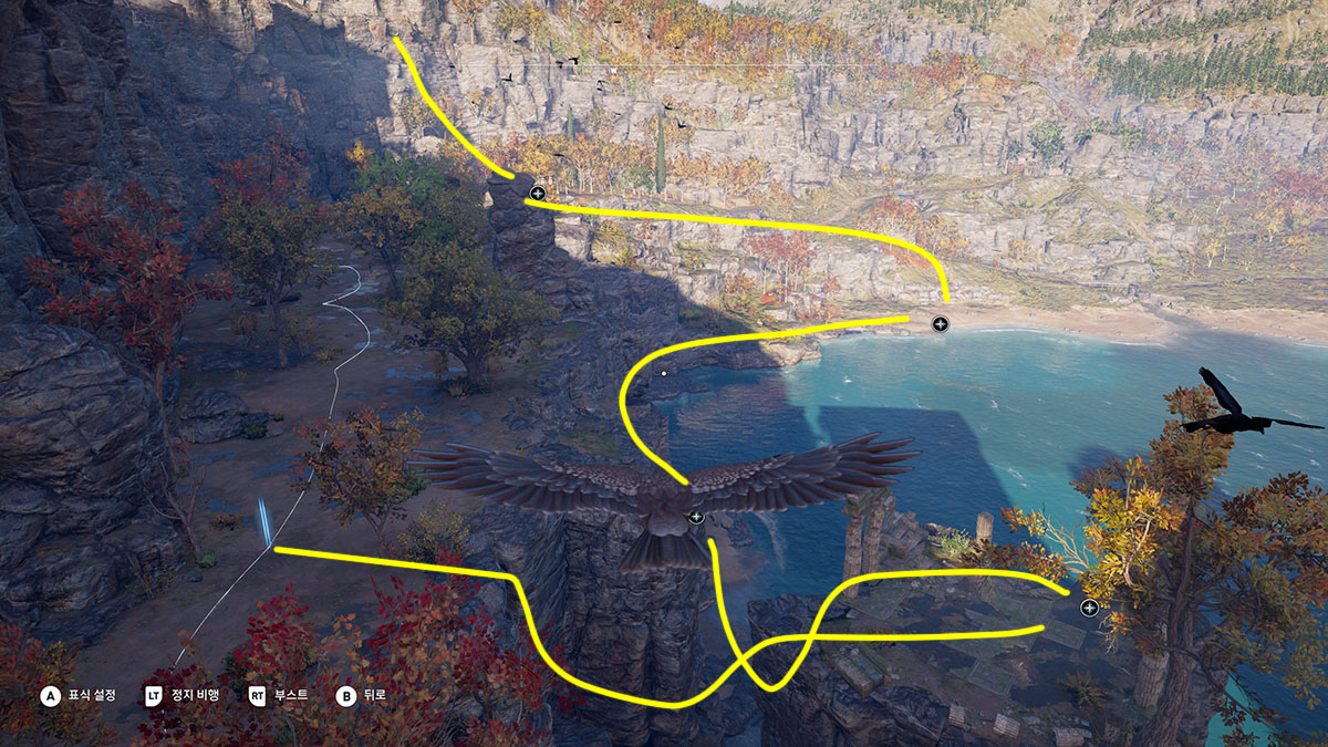 ...... 그 결과는 본편의 퀘스트 택배지옥이 떠오르는 엄청난 동선 이동이었습니다. 투어 모드에서 빠른 이동이 가능한 지점은 각 투어의 시작점 및 동기화 포인트 두군데 뿐인데, 새로 추가된 텍스트 투어를 보러 가기 위해 저렇게 노란선만큼 수백미터를 이동하게끔 개악해버린 겁니다!