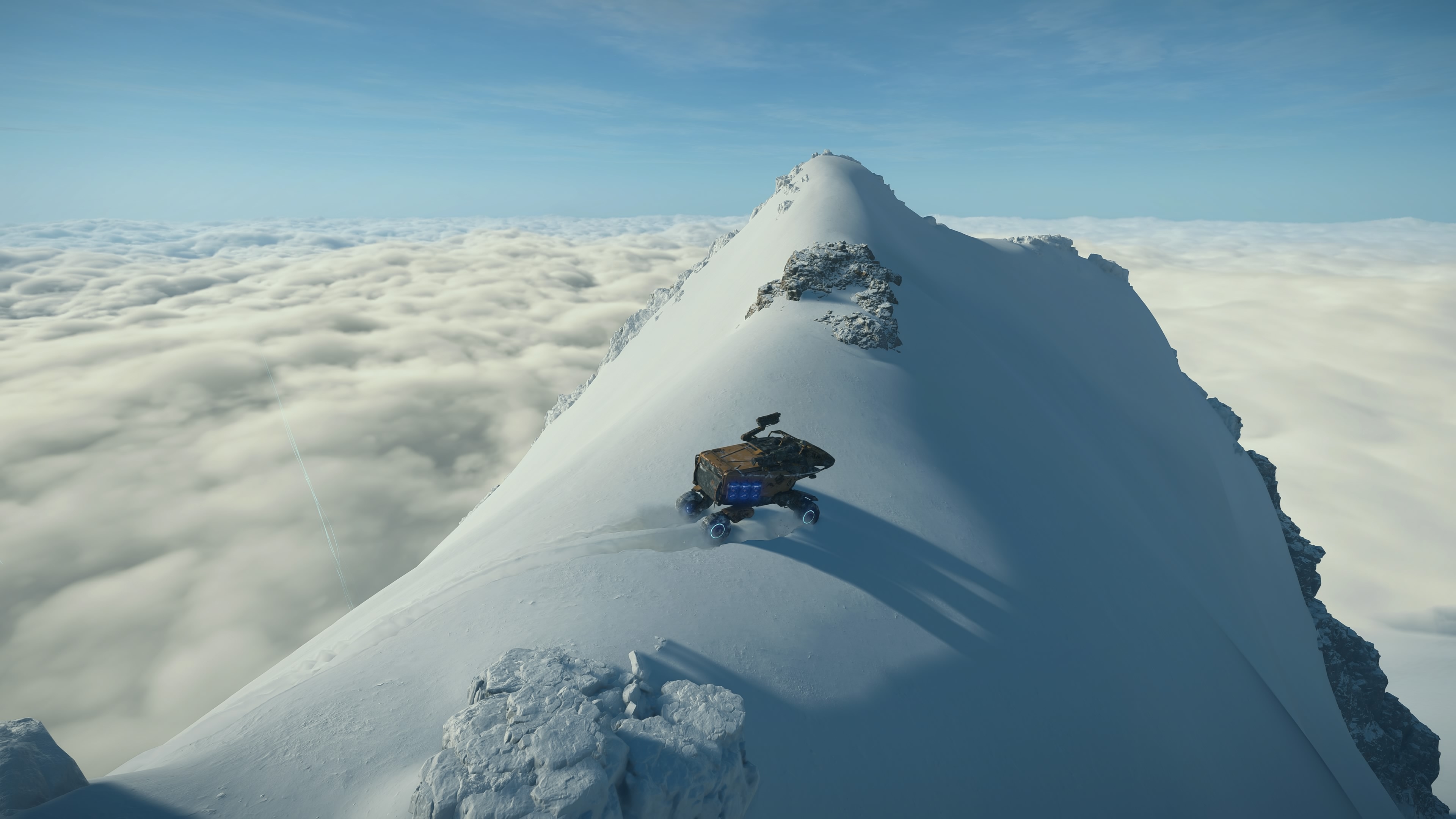 이번 작의 게임성에서 가장 아쉬운 부분은 설산 지형입니다. DS1 에서 설산의 난이도가 쉬웠다는 지적이 있었는지 DS2 는 모든 산맥 지표면에 가파른 경사를 줘서 건물 설치를 매우 어렵게 만들었습니다. 그래서 DS2 의 산맥은 모두 뾰족뾰족하게 복붙한 느낌까지 들어서 산을 보는 재미가 많이 줄었습니다. 게임성은 개선했지만 이 게임의 본질인 한가하게 트래킹 및 등반을 하면서 주위 풍경을 구경하는 목적에는 걸맞지 않은 거죠.